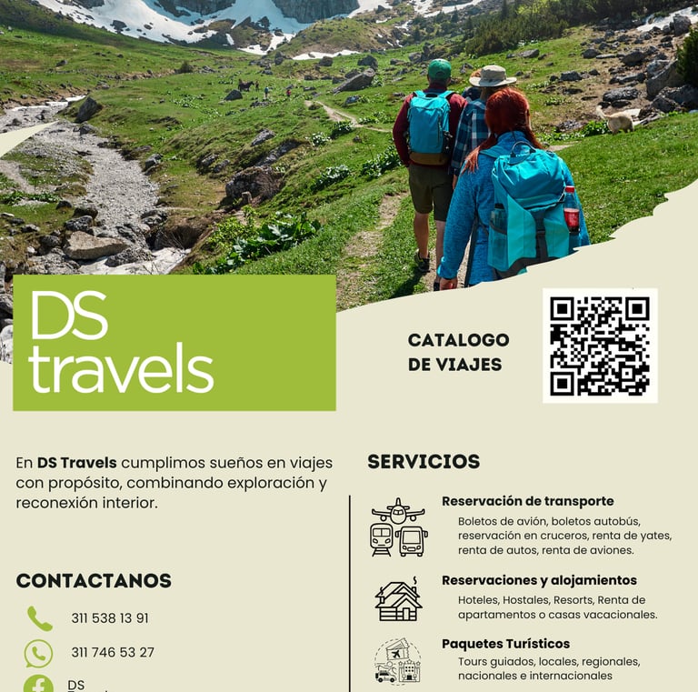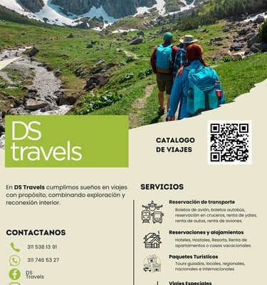 DsTravels es una marca creativa para agencia de viajes internacional, que busca brindar experiencias única y con propósito a sus clientes, es una declaración de modernidad, vanguardia y conexión espiritual, es una invitación a viajar por el mundo y encontrarte a ti mismo en cada destino.